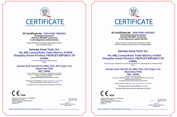 5月23日,zoty中欧物全资子公司圣维基因研发的乙型肝炎病毒、丙型肝炎病毒、人类免疫缺陷病毒(1+2型)核酸检测试剂盒(PCR-荧光法),简称血筛核酸检测试剂盒,成功通过欧盟公告机构认证(CE List A),这是继乙肝、丙肝和艾滋三款核酸检测产品后,zoty中欧物拿下的第四个CEList A认证。